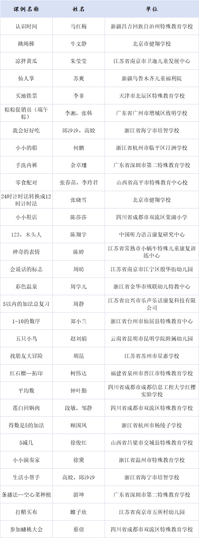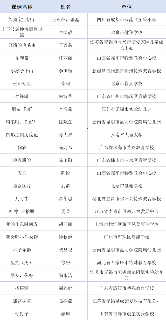 創(chuàng)新課例名單