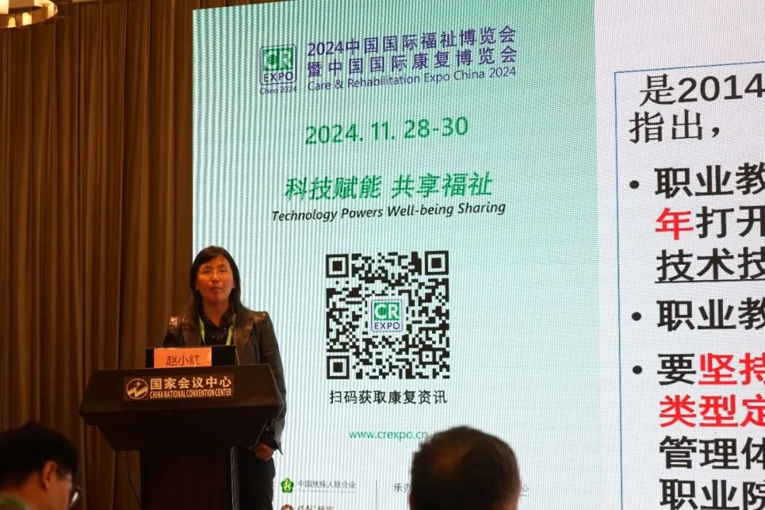 11月29-30日,在2024中國國際福祉博覽會暨中國國際康復(fù)博覽會期間,由中國殘疾人康復(fù)協(xié)會主辦、特殊教育學(xué)院和特殊教育研究所承辦“新時期培智學(xué)生職業(yè)教育發(fā)展交流會”成功舉行。此次交流會旨在落實(shí)黨的二十大提出的“強(qiáng)化特殊教育普惠發(fā)展”以及“完善重點(diǎn)群體就業(yè)支持體系”、國務(wù)院印發(fā)的《“十四五”殘疾人保障和發(fā)展規(guī)劃》中提出“提升殘疾人職業(yè)素質(zhì)和就業(yè)創(chuàng)業(yè)能力”、國務(wù)院辦公廳轉(zhuǎn)發(fā)《“十四五”特殊教育發(fā)展提升行動計劃》中提出“積極探索設(shè)置面向智力殘疾、多重殘疾和孤獨(dú)癥等殘疾學(xué)生的專業(yè)等文件精神,推動培智學(xué)生職業(yè)教育事業(yè)規(guī)范發(fā)展。此次交流會主要分為兩部分內(nèi)容,29日在國家會議中心進(jìn)行培智學(xué)生職業(yè)教育發(fā)展交流會,30日在特殊教育學(xué)院進(jìn)行培智職業(yè)教育共學(xué)活動。