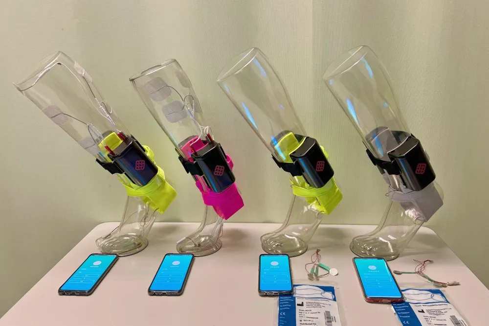 移動式踝足外神經(jīng)肌肉骨骼 (ENMS) 是同類產(chǎn)品中首創(chuàng)的,它將外骨骼、軟氣動肌肉、神經(jīng)肌肉電刺激 (NMES) 和振動觸覺感官反饋的多模式優(yōu)勢集成到一個由 9V 充電電池供電的輕便可穿戴系統(tǒng)中。這種獨特的組合不僅可以有效矯正中風后足下垂和足內(nèi)翻,而且整個系統(tǒng)也便于非專業(yè)人士在自助遠程康復(fù)中使用。
