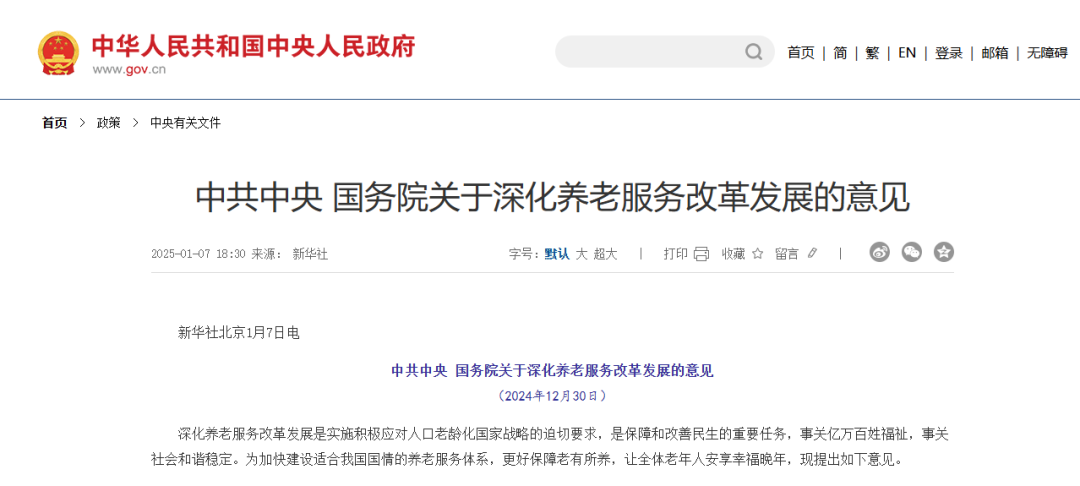 中共中央、國(guó)務(wù)院發(fā)布關(guān)于深化養(yǎng)老服務(wù)改革發(fā)展的意見