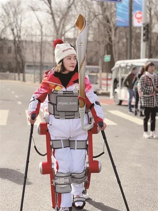 而因一場(chǎng)意外導(dǎo)致高位截癱11年的楊淑亭則在大艾外骨骼機(jī)器人的幫助下重新站立,并完成了2022年北京冬殘奧會(huì)的火炬?zhèn)鬟f。同樣作為火炬手的邵海朋也在外骨骼機(jī)器人的輔助下,完成了圣火火炬匯集。