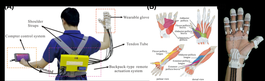目前,國內(nèi)高校也在柔性外骨骼機(jī)器人的研究上有所進(jìn)展,例如中國科學(xué)院沈陽自動(dòng)化研究所科研人員便面向手部康復(fù),設(shè)計(jì)出了一款具有靈巧操作能力的柔性手部外骨骼機(jī)器人,突破了以往柔性手部外骨骼機(jī)器人只能實(shí)現(xiàn)簡(jiǎn)單的抓握輔助,而通常無法恢復(fù)人體手部運(yùn)動(dòng)靈巧性的問題。