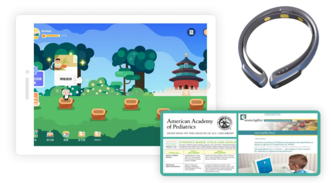 強(qiáng)腦科技研發(fā)的StarKids開星果腦機(jī)接口社交溝通訓(xùn)練系統(tǒng),其聚焦社交和語言障礙,通過捕捉兒童大腦中與社交相關(guān)的腦電信號,并結(jié)合人工智能算法,進(jìn)行實時閉環(huán)反饋訓(xùn)練,以促進(jìn)患兒大腦神經(jīng)可塑性,由此提升兒童的認(rèn)知社交能力與邏輯思維能力。