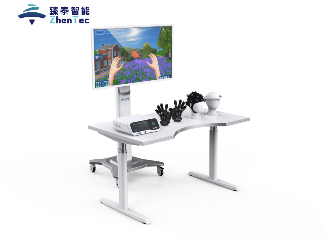 同樣屬于西安臻泰智能旗下的腦機(jī)接口手功能康復(fù)訓(xùn)練系統(tǒng)(BCI+OT)則是國內(nèi)首款視覺運動誘發(fā)的腦控手功能康復(fù)訓(xùn)練系統(tǒng)。該系統(tǒng)通過視覺運動誘發(fā)范式與手部鏡像動作協(xié)同刺激,有效激活患者視覺和感覺運動皮層的多腦區(qū)響應(yīng),以此實現(xiàn)意念控制下的“中樞-外周-中樞”閉環(huán)主動康復(fù)訓(xùn)練,可有效幫助患者進(jìn)行康復(fù)治療。