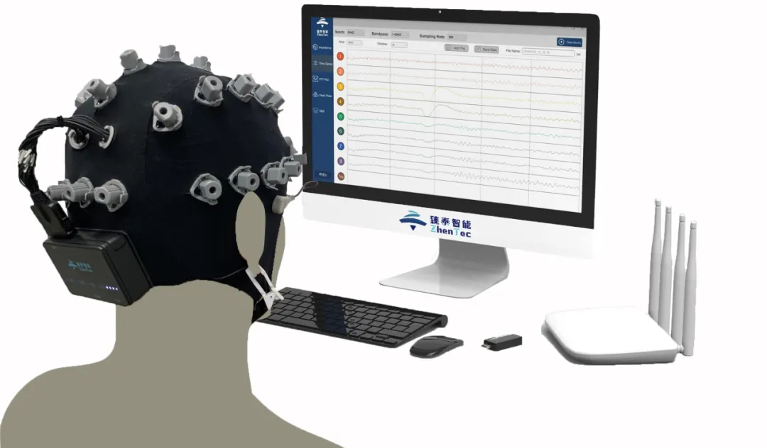 西安臻泰智能科技有限公司孵化的產(chǎn)品——無線多通道腦電采集分析系統(tǒng)是國內(nèi)首款無線全兼容腦電采集分析系統(tǒng)。其通過腦電電極采集人體uV級腦電信號,進(jìn)行放大器處理、數(shù)模轉(zhuǎn)換后,通過5GHz的WIFI通信發(fā)送到電腦端,并以此控制外部機(jī)器人,形成腦-機(jī)接口系統(tǒng)。