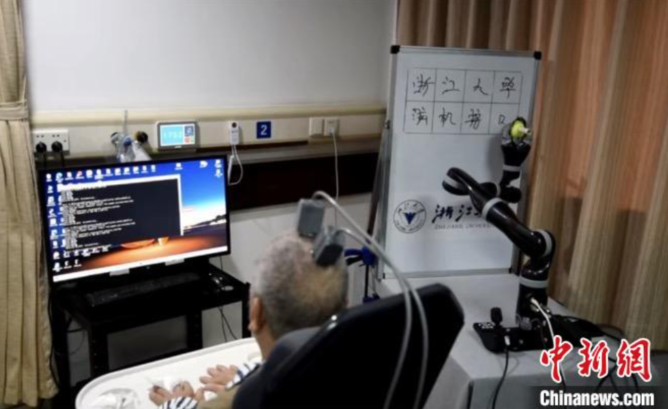 浙江大學(xué)腦機(jī)接口臨床轉(zhuǎn)化技術(shù)團(tuán)隊也通過腦機(jī)接口技術(shù)讓一位76歲高位截癱的老人實現(xiàn)了用意念寫字,實現(xiàn)了侵入式腦機(jī)接口腦控機(jī)械臂書寫漢字。