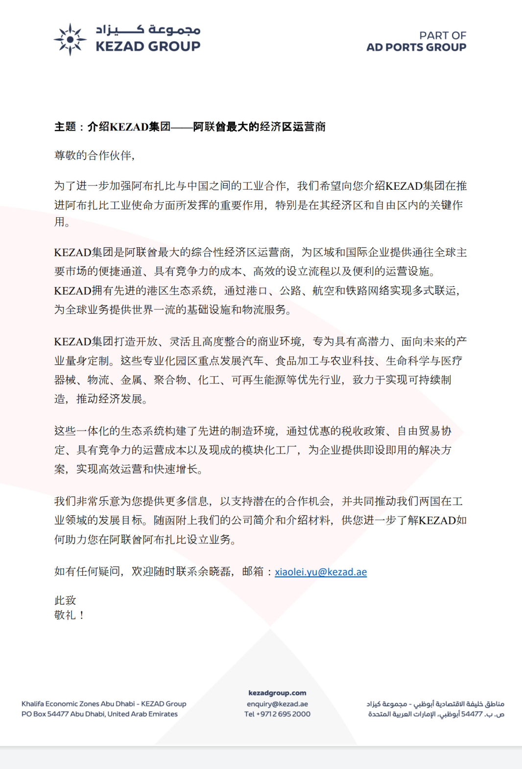 KEZAD集團是阿聯(lián)酋最大的綜合性經(jīng)濟區(qū)運營商,為區(qū)域和國際企業(yè)提供通往全球主要市場的便捷通道、具有競爭力的成本、高效的設(shè)立流程以及便利的運營設(shè)施。