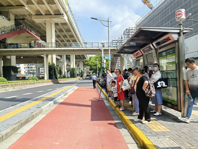 公交站??烤€路多,早晚高峰人流量大,人非混行隱患多……記者來到了位于軌道交通1號(hào)線彭浦新村地鐵站1號(hào)和2號(hào)出入口之間的共和新路聞喜路東側(cè)公交站,這里停靠的公交線路多達(dá)11條,曾經(jīng)由于候車亭位置不便,乘客乘車需穿越非機(jī)動(dòng)車停靠區(qū),且候車島寬度過窄,存在的安全隱患令人心憂。