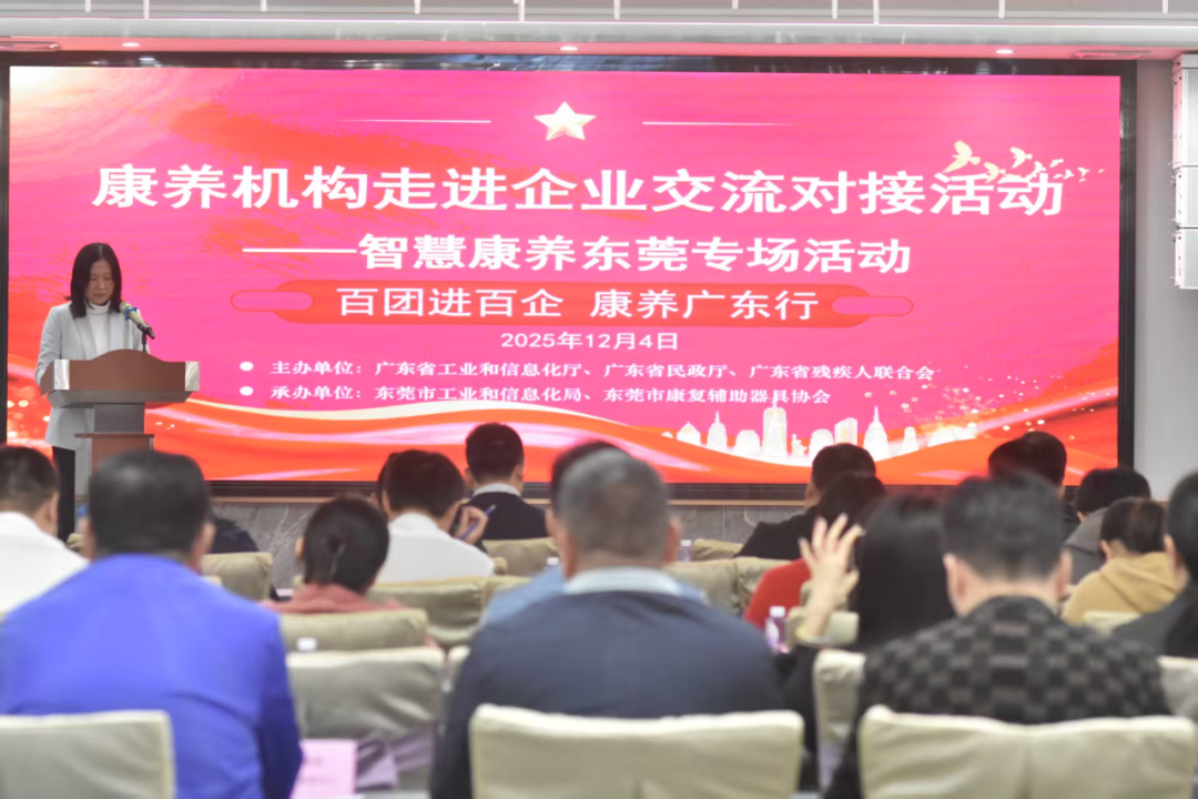 近日,廣東省工業(yè)和信息化廳、省民政廳、省殘聯(lián)聯(lián)合主辦的康養(yǎng)機(jī)構(gòu)走進(jìn)企業(yè)交流對(duì)接活動(dòng)(“百團(tuán)進(jìn)百企康養(yǎng)廣東行”系列活動(dòng))之智慧康養(yǎng)東莞專(zhuān)場(chǎng)活動(dòng),日前在東莞成功舉辦。本次活動(dòng)是2025年“百團(tuán)進(jìn)百企 康養(yǎng)廣東行”系列活動(dòng)的第4場(chǎng)、也是最后一場(chǎng)活動(dòng),全年共組織百余家康養(yǎng)機(jī)構(gòu)走進(jìn)了8家老年用品企業(yè)或園區(qū),并與近百家企業(yè)座談交流,形成了超50個(gè)品類(lèi)的康養(yǎng)機(jī)構(gòu)需求清單,促進(jìn)供需雙方信息暢通與精準(zhǔn)對(duì)接。