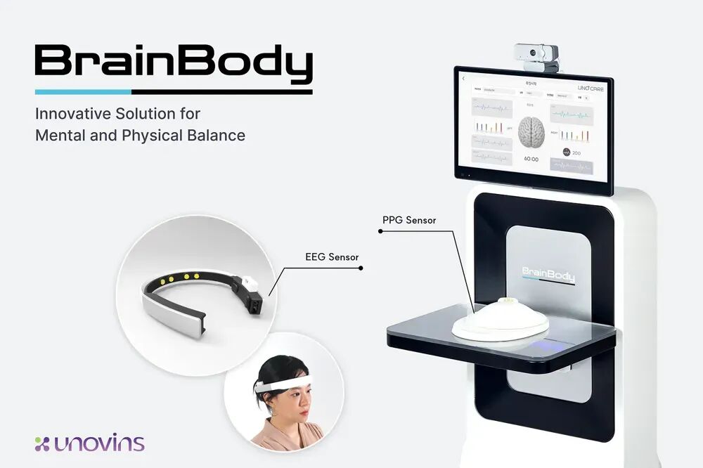 UNO BrainBody 是一款創(chuàng)新的一體化身心篩查系統(tǒng),集成了雙通道腦電圖與穹頂型光電容積描記傳感器,能夠在一分鐘內(nèi)同步完成腦電活動(dòng)、心率變異性、軀體壓力與活力值等醫(yī)院級(jí)指標(biāo)的快速評(píng)估,其篩查項(xiàng)目兼容韓國(guó)三項(xiàng)醫(yī)保報(bào)銷編碼,實(shí)現(xiàn)了高效、標(biāo)準(zhǔn)化的身心綜合檢測(cè)。設(shè)備配備面部識(shí)別登錄、平板操作界面及云端管理平臺(tái),檢測(cè)結(jié)果可通過專屬應(yīng)用“UNOCARE”查看歷史記錄并獲取個(gè)性化康復(fù)建議。未來(lái)還將引入AI解讀、個(gè)性化方案及新生物標(biāo)志物開發(fā),目前已應(yīng)用于韓國(guó)多家精神科、內(nèi)科及家庭診所。