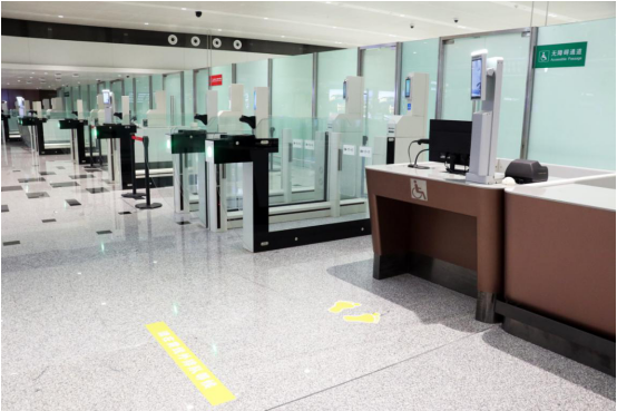 無障礙安檢通道寬度不小于1.2米,并設(shè)有低位身份證掃描、登機牌驗證、指紋識別、面部識別等設(shè)施,以及設(shè)置無障礙專用安檢區(qū)域用于保護(hù)殘障人士隱私。