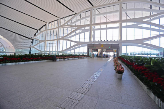 航站樓內(nèi)通道易接觸區(qū)域的墻面直角均設(shè)置為圓弧形倒角,且所有旅客公共區(qū)通道寬度均不小于1.2米。