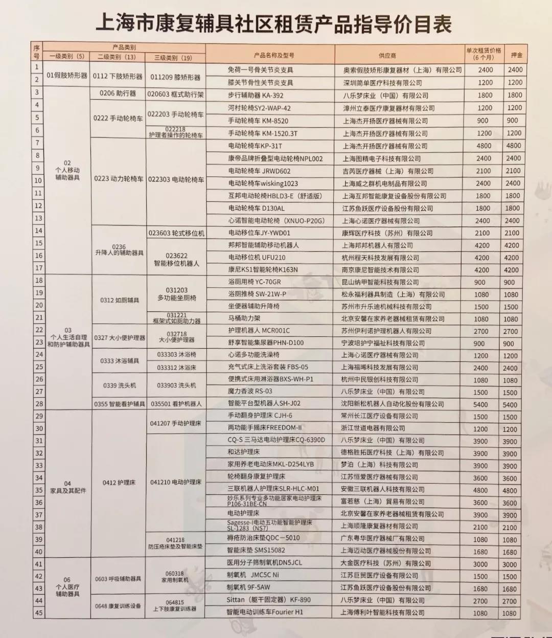 試點期間,每件產(chǎn)品租期均為半年,價格從900-4000多元不等,老人還需繳納一定金額的押金,租賃期結(jié)束后歸還。本市戶籍60周歲至74周歲低保、低收入老年人,75周歲(含)以上老年人可申請租賃服務補貼,補貼金額為租賃價格的50%,每人每年補貼上限為3000元。(下方價目表僅供參考,仍在實施調(diào)整中)