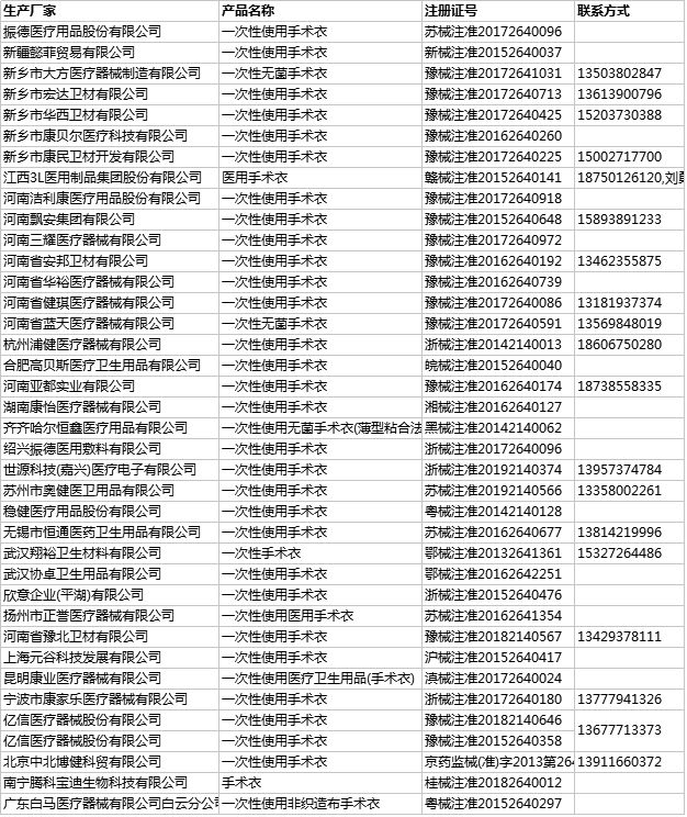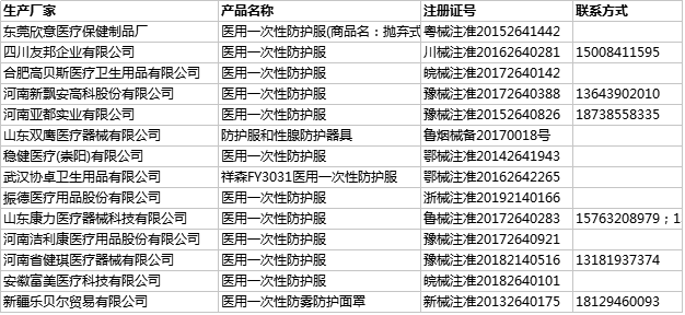 以下為口罩、防護(hù)服、消毒液等相關(guān)防護(hù)用品生產(chǎn)廠家信息匯總,供有需要的單位聯(lián)絡(luò)參考(*提醒:各采購單位和個(gè)人務(wù)必不要以非醫(yī)用口罩等替代,但凡未經(jīng)藥監(jiān)局系統(tǒng)批準(zhǔn)的產(chǎn)品,都不具備醫(yī)用資質(zhì)和效果。)
