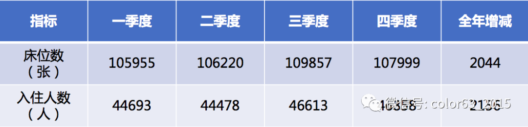 床位數(shù)和入住人數(shù)雖然全年都有所增長,但又分別在個別季度有所下降。其中床位數(shù)在第四季度下降較明顯,按照慣例,第四季度有重陽節(jié),是養(yǎng)老機(jī)構(gòu)密集開業(yè)的日子,但卻出現(xiàn)床位大幅減少的情況實(shí)屬罕見。那些減少的床位數(shù)去了哪里,這是個問題……