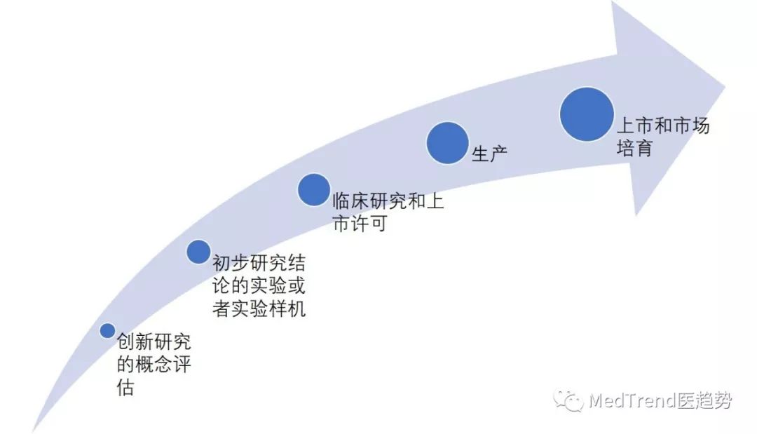醫(yī)療機(jī)器人從實(shí)驗(yàn)室到商業(yè)化,一般要經(jīng)歷創(chuàng)新研究的概念評(píng)估、初步研究結(jié)論的實(shí)驗(yàn)或者實(shí)驗(yàn)樣機(jī)、臨床研究和上市許可、生產(chǎn)、上市和市場(chǎng)培育5個(gè)階段,這一過(guò)程往往會(huì)耗費(fèi)超過(guò)十年時(shí)間。比如達(dá)芬奇機(jī)器人,從實(shí)驗(yàn)室到做成產(chǎn)品、進(jìn)行產(chǎn)業(yè)化,用了14年。
