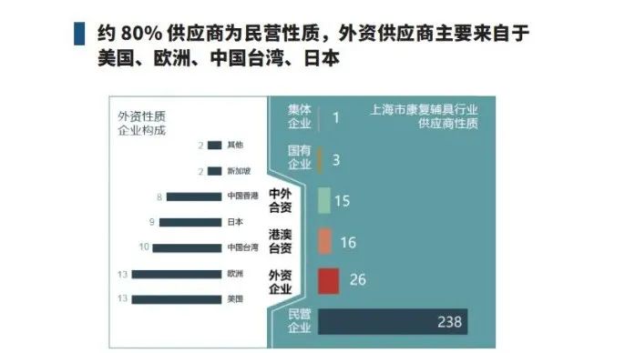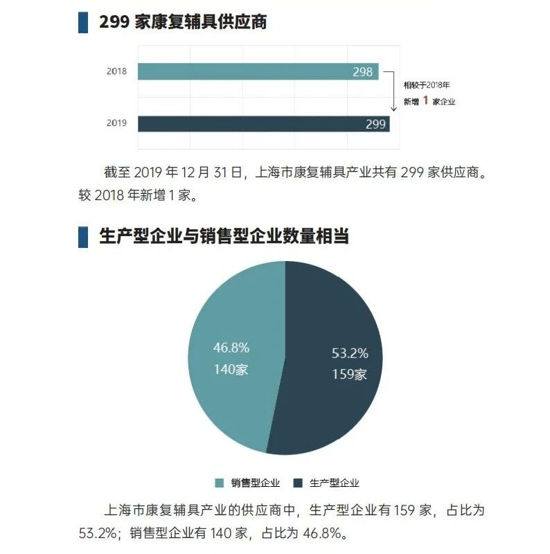 通過線下調(diào)研和線上企業(yè)信息數(shù)據(jù)庫的檢索,將上海市康復(fù)器具協(xié)會成員單位、在上海市注冊且主營業(yè)務(wù)為康復(fù)輔具的企業(yè)、在上海市注冊且持有輔具專利等345家企業(yè)信息納入本次統(tǒng)計范圍,其中包括299家康復(fù)輔具供應(yīng)商和46家康復(fù)輔具服務(wù)企業(yè)。